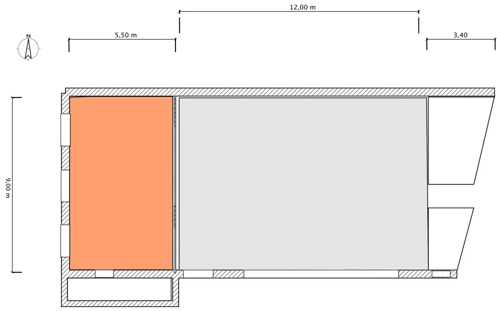 W5.50m x L8.70m x H da 4 a 6m - 50mq